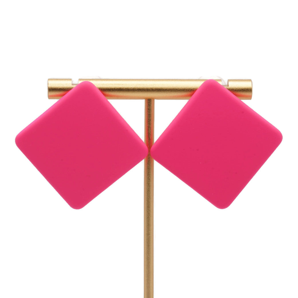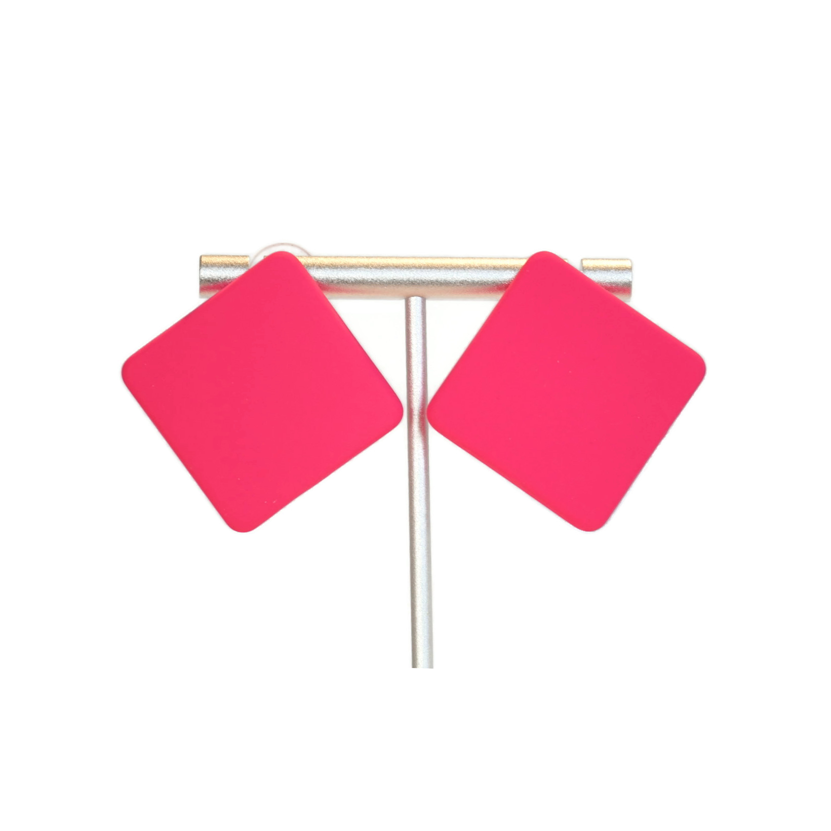 A vibrant and modern accessory for a bold and comfortable style statement. The sleek square design in hot pink adds a pop of color to any outfit, ensuring a chic and eye-catching look. Elevate your style effortlessly with these versatile and comfortable earrings.