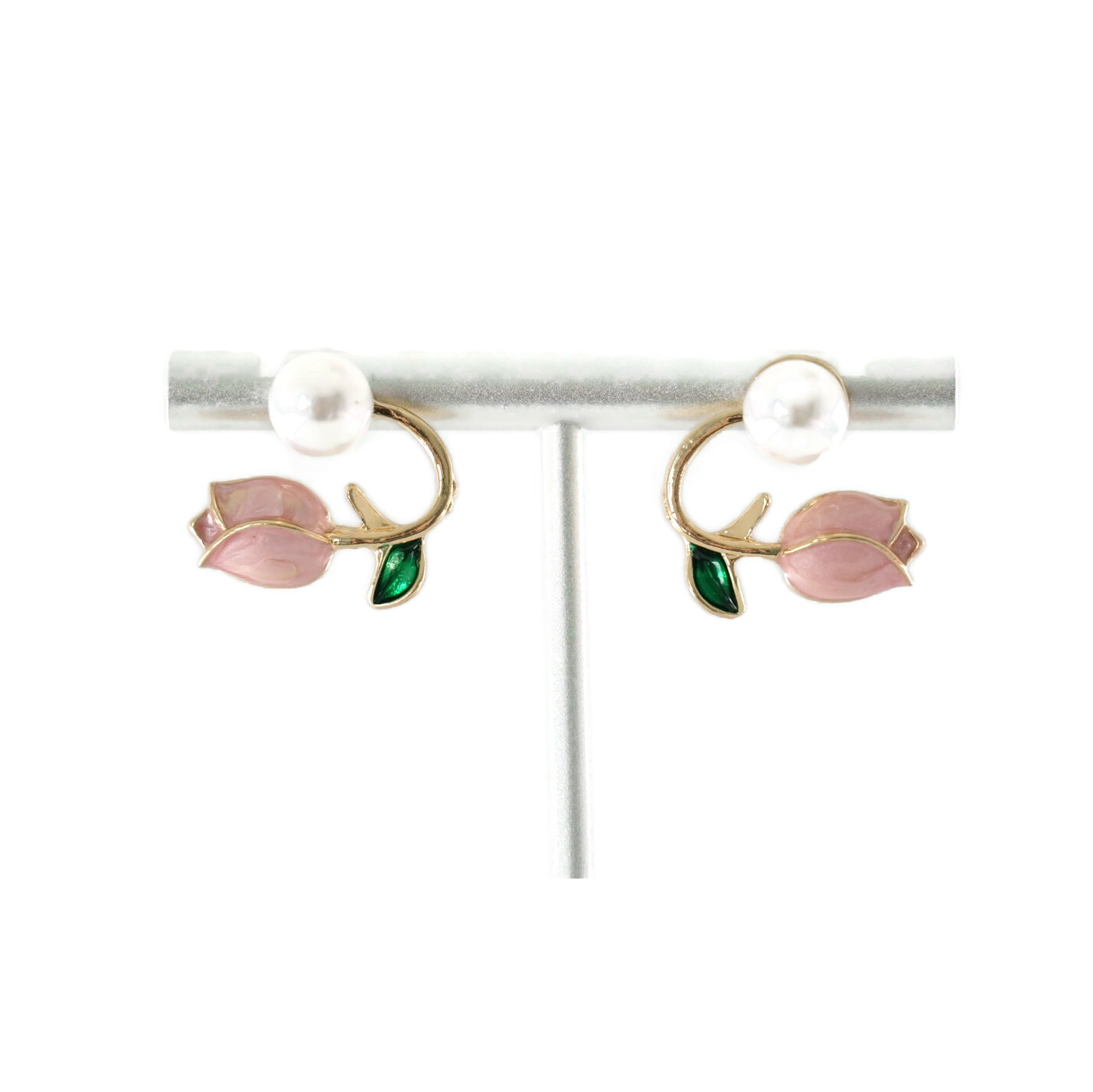 Each stud, a subtle pearl, blossoms into a timeless tulip design, infusing a touch of nature-inspired sophistication to your style."